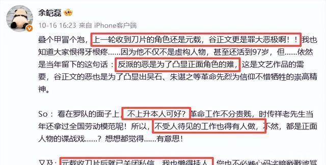 文末那句“别上升本人”,既透露着演员的无奈,也藏着他对角色清醒的认知。 观众越是入戏太深,就越是说明了他塑造的谷正文的成功。